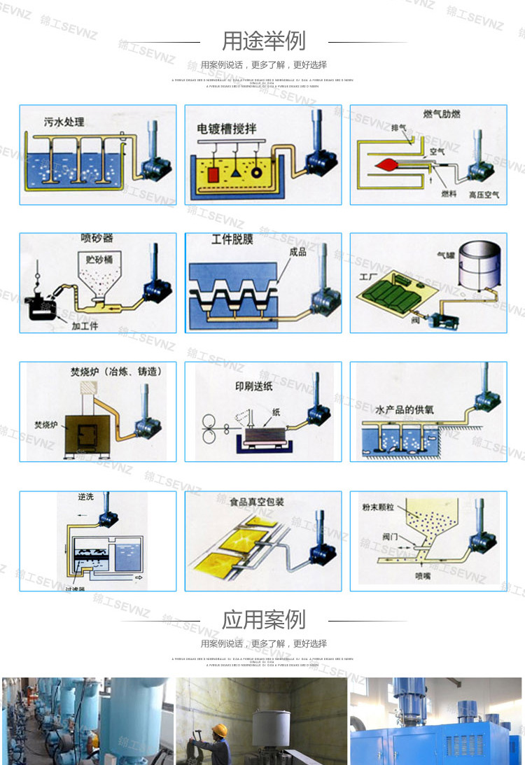 羅茨鼓風機一般用在污水處理、環保、礦山、石油、化工、水泥、鑄造、食品、醫藥、造紙、氣力輸送、粉體顆粒輸送、化肥、建材、電力、煤炭、水產養殖等諸多行業。多是利用羅茨風機輸送空氣,添加機械合金密封后,也可以用于輸送可燃氣體。